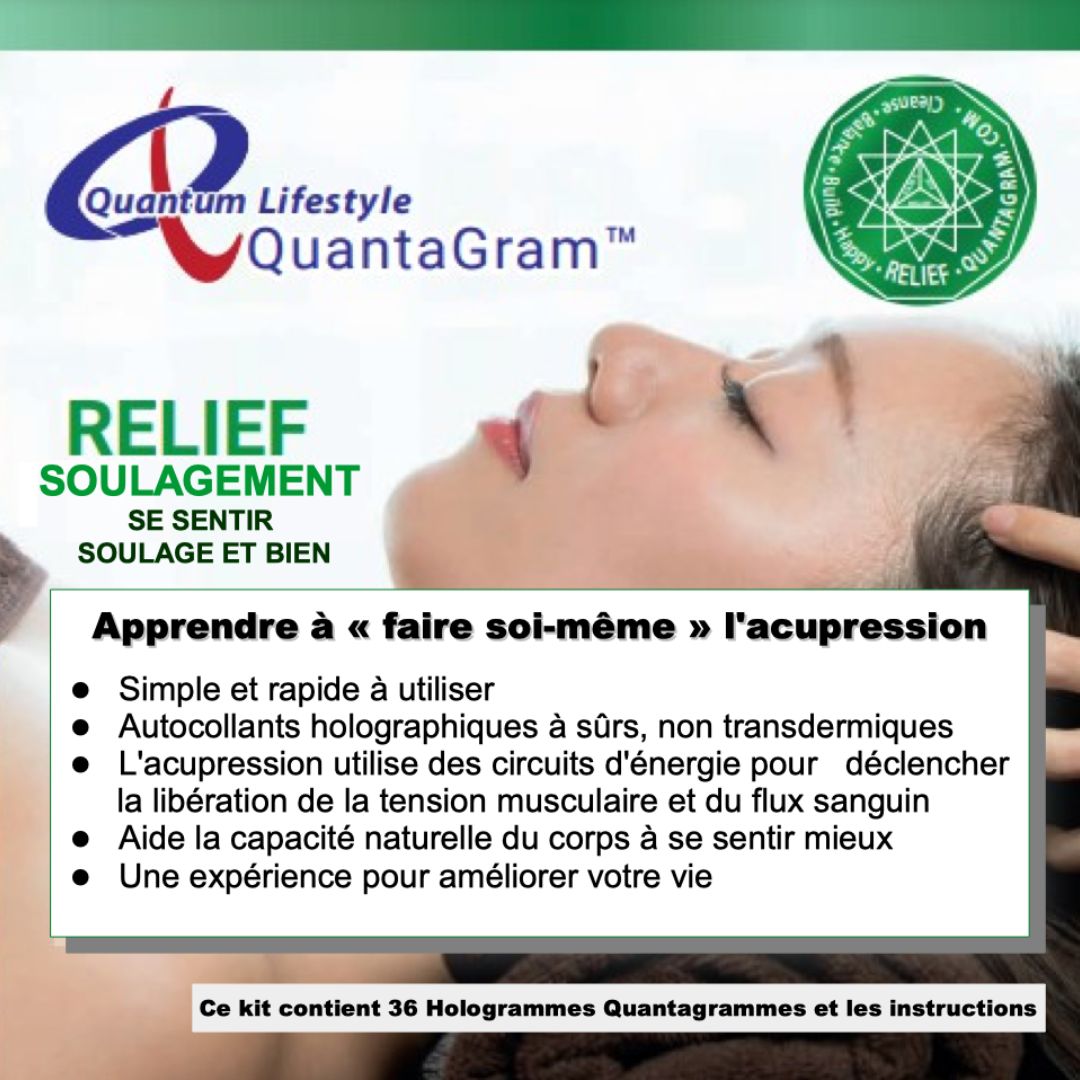 Un Quantagram™ (ou disque holographique) est un autocollant « Do-It-Yourself », un hologramme énergétiqueprogrammé avec des fréquences spécifiques pour stimuler les flux d’énergie corps-esprit . Chaque autocollant fait partie d’un kit d’acupression quantique : il interagit avec les méridiens énergétiques du corps pour favoriser la vitalité, le sommeil réparateur, la concentration mentale et la libération d’habitudes limitantes. Leur action douce et naturelle repose sur les principes de la résonance quantique, soutenant les capacités innées d’auto-équilibrage du corps.